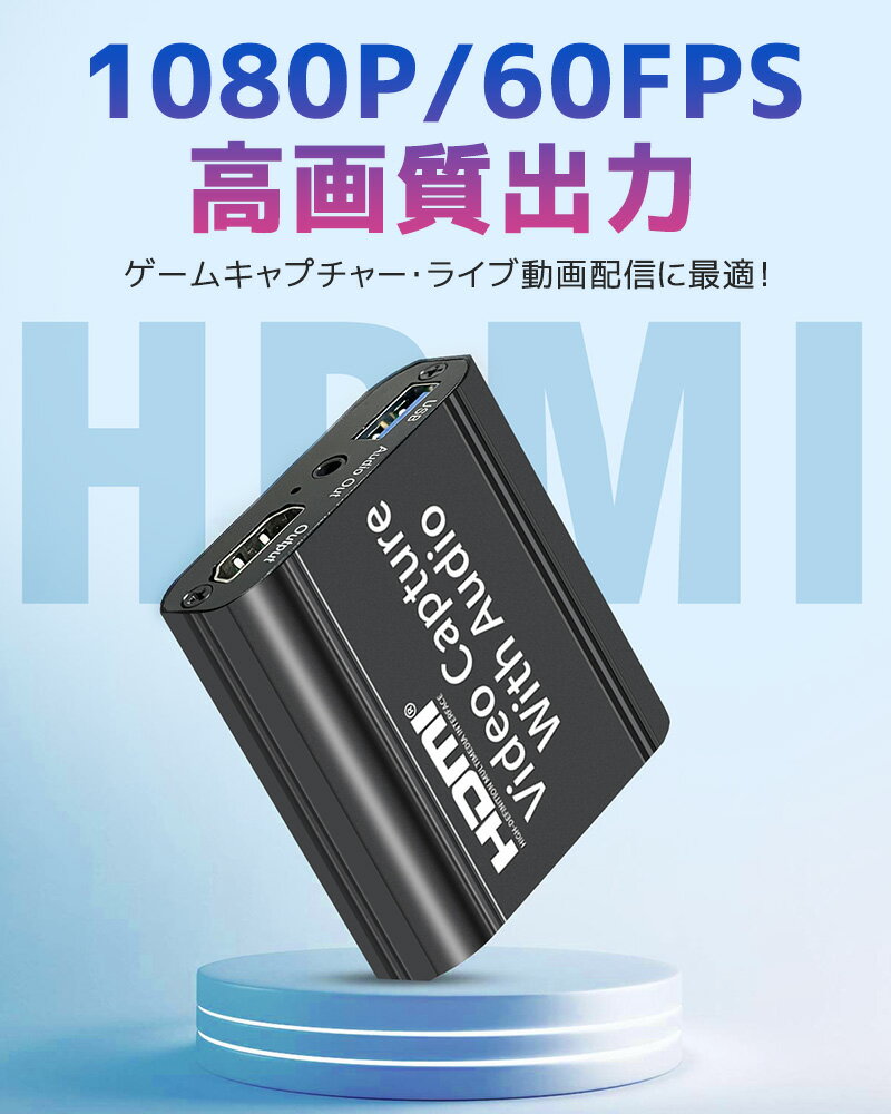送料無料 キャプチャーボード ゲーム HDMI軽量小型 HDMIパススルー出力 ビデオ ゲームライブストリーミング可能 簡単 便利 ライブ配信 遅延なし 高画質 高解像度 音声出力 パソコン