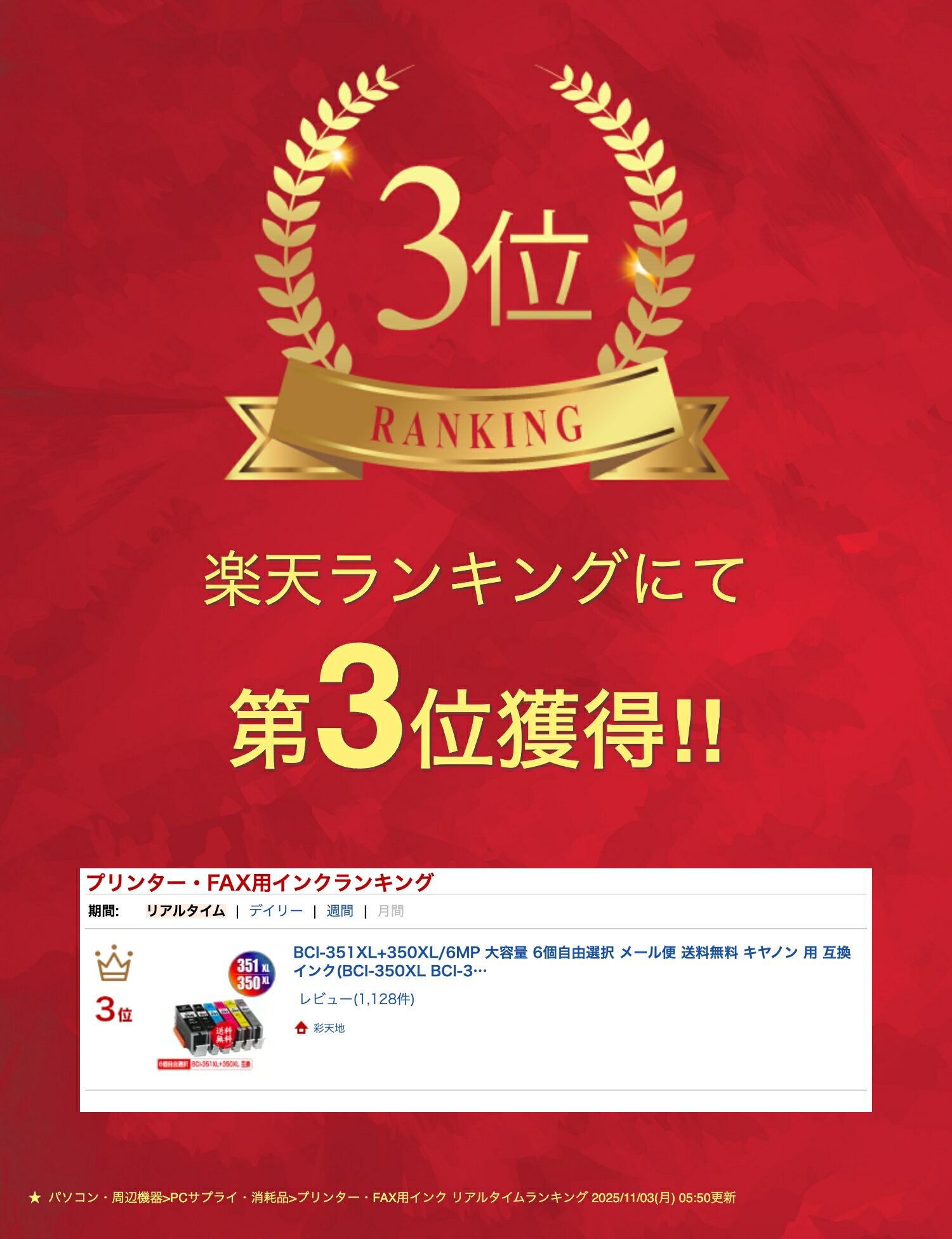 BCI-351XL+350XL/6MP 大容量 6個自由選択 メール便 送料無料 キヤノン 用 互換 インク(BCI-350XL BCI-351XL BCI-350 BCI-351 BCI-351+350/6MP BCI-350XLBK BCI-351XLBK BCI-351XLC BCI-351XLM BCI-351XLY BCI-351XLGY BCI 350XL 351XL BCI 350 351 BCI350XLBK)