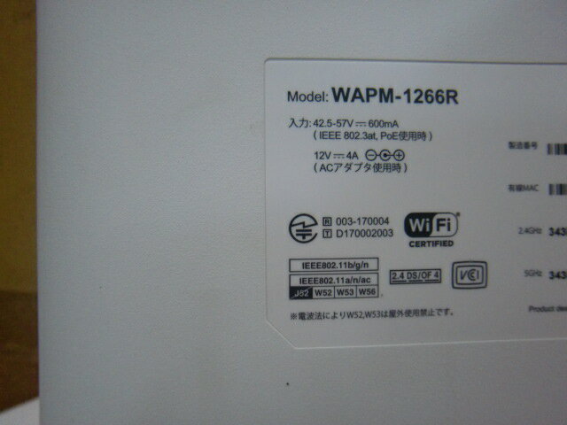 【中古】Buffalo 無線LANアクセスポイント AirStation Pro WAPM-1266R(※動作はRESETボタンでの初期化のみとなります。)(※中古の為、本体色ヤケはあります。ご了承ください)