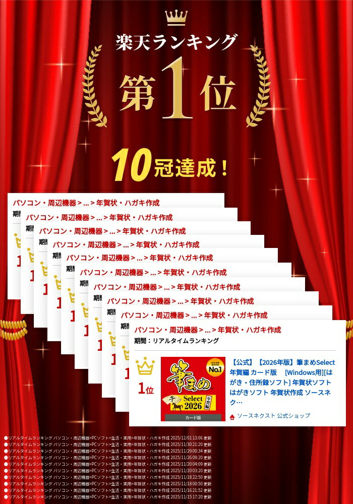 【公式】【2026年版】筆まめSelect 年賀編 カード版 [Windows用][はがき・住所録ソフト] 年賀状ソフト はがきソフト 年賀状作成 ソースネクスト 2026年度版 人気 使いやすい 簡単