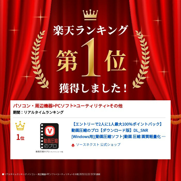 動画圧縮のプロ【ダウンロード版】DL_SNR [Windows用][動画圧縮ソフト]動画 圧縮 画質軽量化 解像度 容量 削減 軽量化 ソースネクスト