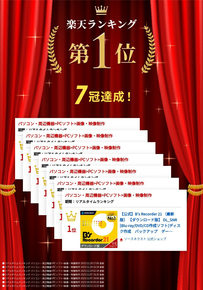 【スーパーSALE限定価格】【公式】B's Recorder 21 (最新版) 【ダウンロード版】 DL_SNR [Blu-ray/DVD/CD作成ソフト]ディスク作成 バックアップ データ書き込み ライティングソフト レコーダー ソースネクスト 送料無料 DVD作成ソフト DVD作成 2512SS